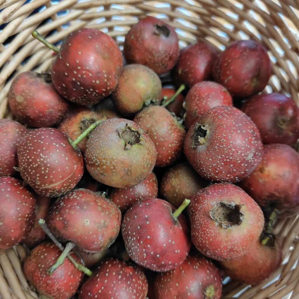 事務所前花壇 山査子(サンザシ)初収穫 中国ではよ~く知られています
