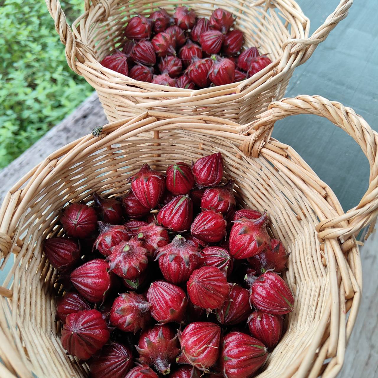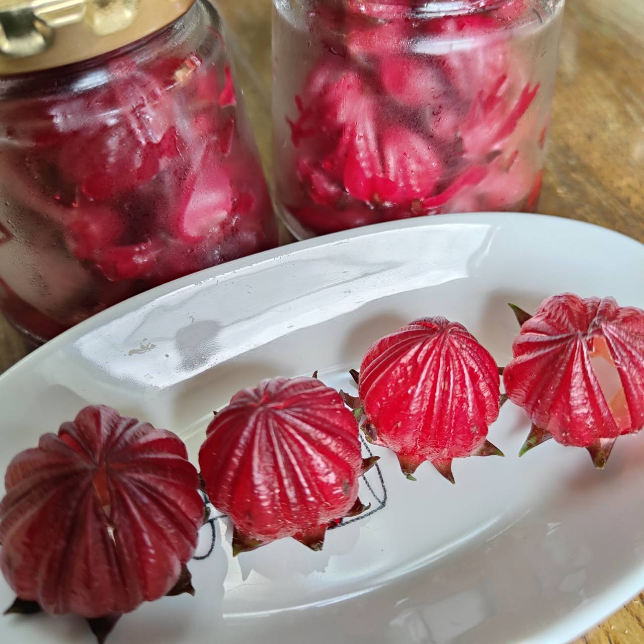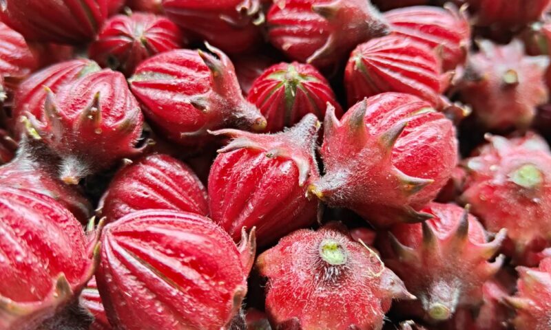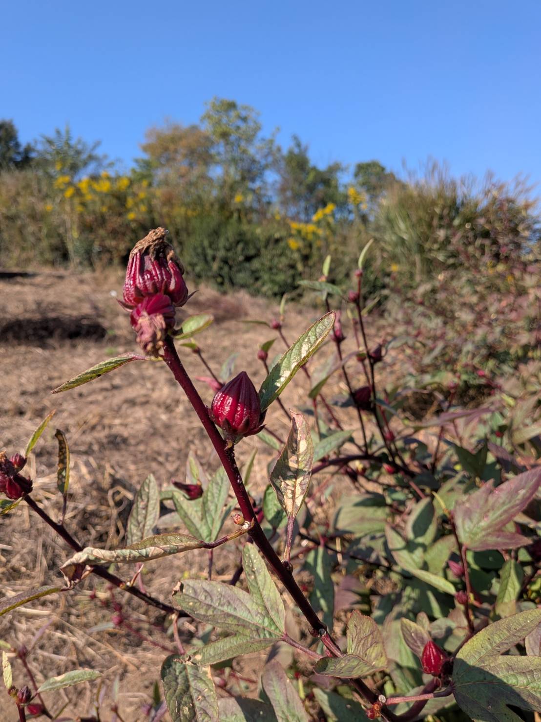 今年初めて 真っ赤なローゼルデビユー たくさん植えよう