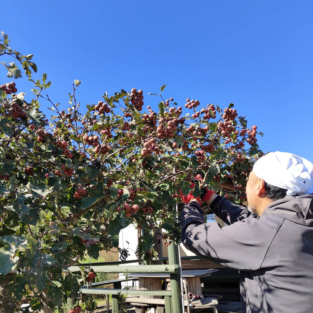 事務所前花壇 山査子(サンザシ)初収穫 中国ではよ~く知られています