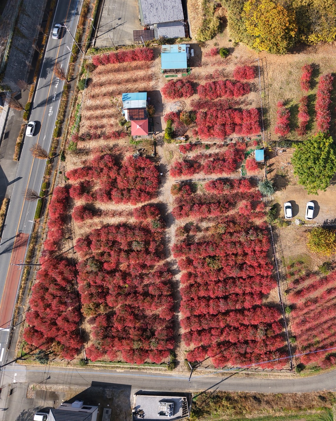 高度140m上空から 早生種(事務所回り)はすでに散りました