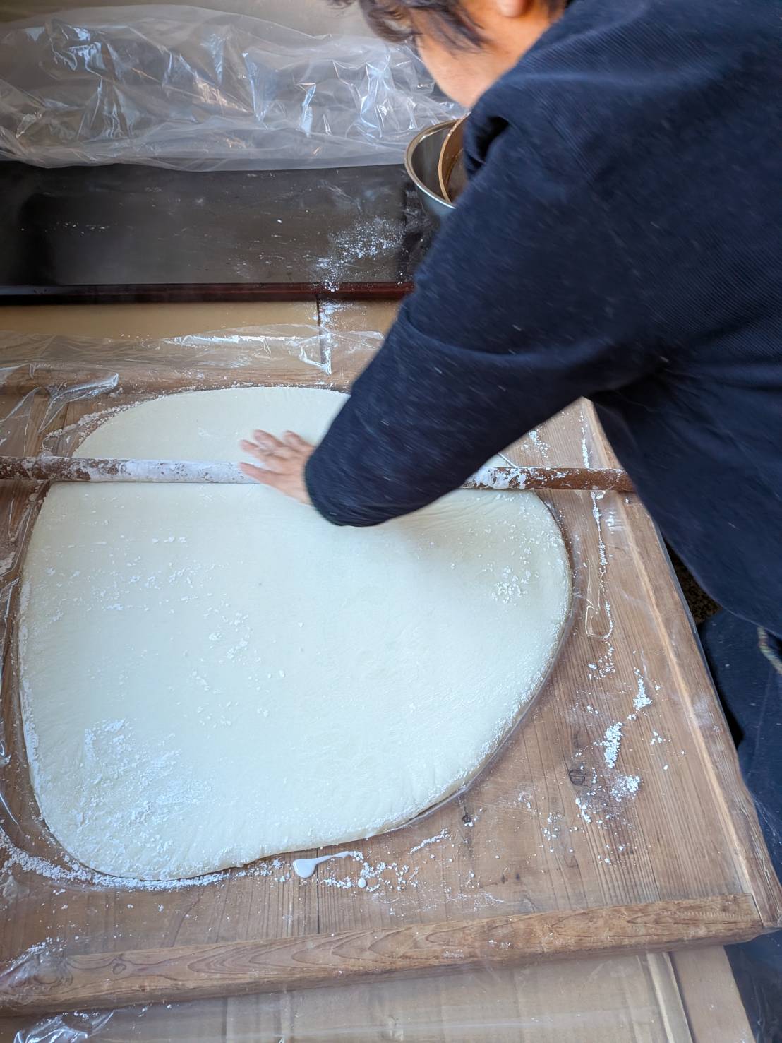 片栗粉をまぶして拡げ のし餅